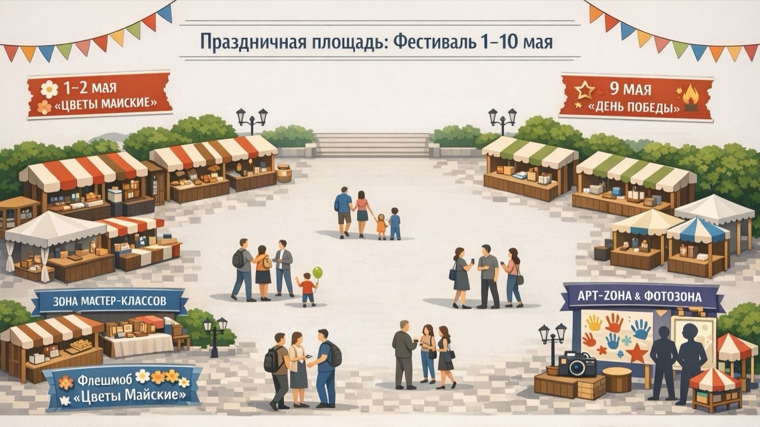 В программе — ежедневные концерты и яркие шоу-программы, интерактивные зоны и творческие мастер-классы, в том числе по созданию картин. Кроме того, запланированы настольные и активные игры и ярмарка изделий ручной работы. Также для посетителей организуют ресторанную зону с разнообразным меню.