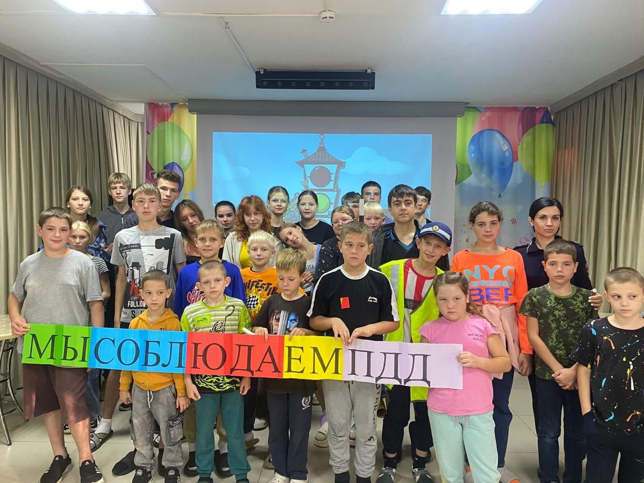 Познавательное занятие «Урок для юных пешеходов» провели сотрудники Госавтоинспекции Апшеронского района для ребят инклюзивной смены детского оздоровительного лагеря г. Апшеронска