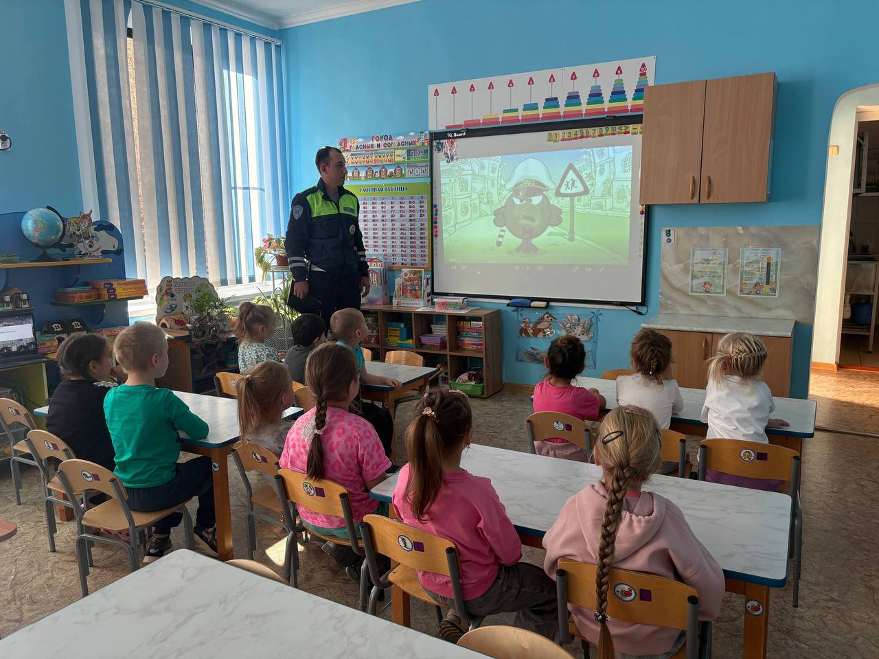 Автоинспектор рассказал дошколятам о правилах безопасного поведения на дороге и во дворе и разъяснил основные ошибки, которые часто допускают дети, а также обратил внимание ребят, на то как важно быть внимательным и осторожным, находясь рядом с проезжей частью.