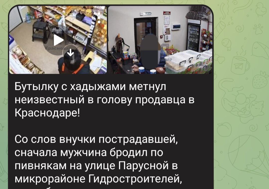 29 октября в полицию Краснодара поступило сообщение о том, что в одном из магазинов города неизвестный бросил бутылку в женщину, нанеся ей телесные повреждения.