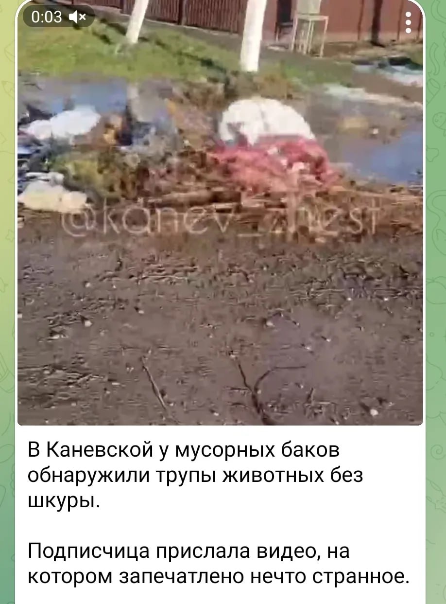 В ходе мониторинга сети Интернет выявлена публикация, автор которой сообщает, что обнаружил в станице Каневской у мусорных баков трупы животных.