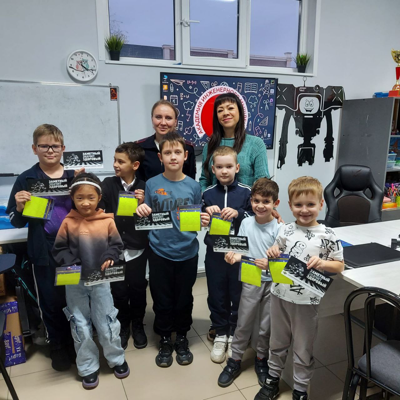 Автоинспекторы проводят профилактические беседы, чтобы снизить детский дорожнотранспортный травматизм и напомнить о важности световозвращающих элементов в тёмное время суток. В рамках мероприятия стражи дорожного порядка встретились с юными изобретателями робототехники из клуба «СоваЛикс» станицы Динской.