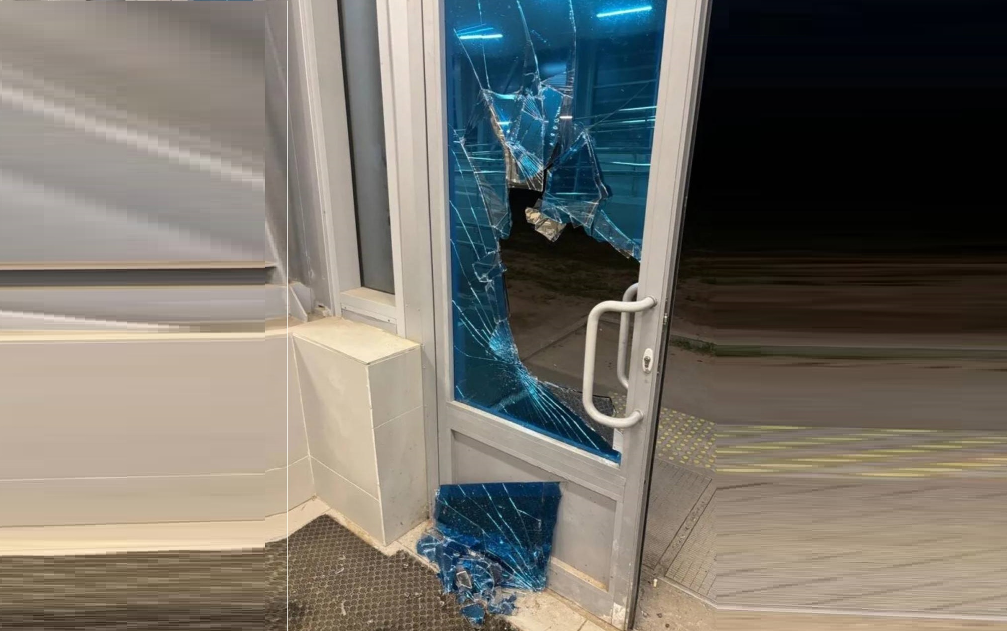 Хулиган расколотил стекла и кафель на двух этажах здания.