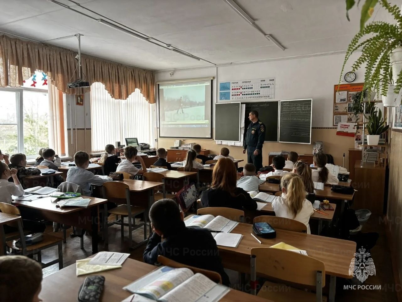 На территории Тимашевского района продолжилась масштабная профилактическая работа по предупреждению происшествий на водных объектах в зимний период. Старший государственный инспектор Калининского инспекторского участка ГИМС Руслан Владимирович Исаенко провёл познавательную беседу для учащихся МБОУ СОШ № 13.