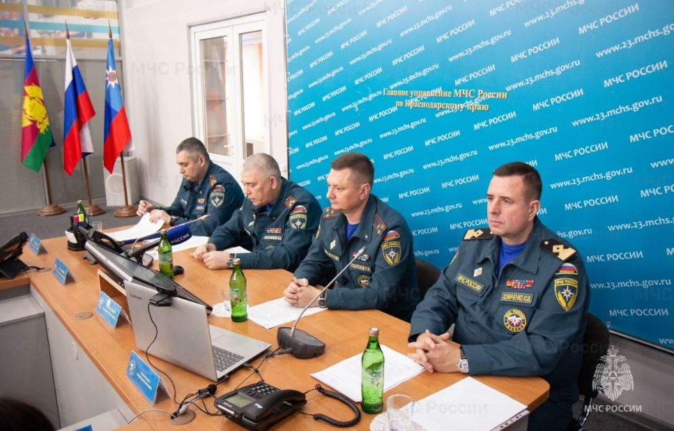 В Главном управлении МЧС России по Краснодарскому краю прошла пресс-конференция руководящего состава. Спикерами выступили ВрИО начальника Главного управления Евгений Поддубный, первый заместитель начальника Главного управления Николай Платонихин, начальник управления гражданской обороны и защиты населения Главного управления Аркадий Согомонян и и.о. начальника Центра ГИМС Главного управления Юрий Хомиченко. Присутствовали представители ведущих средств массовой информации региона и собственные корреспонденты федеральных информационных агентств.