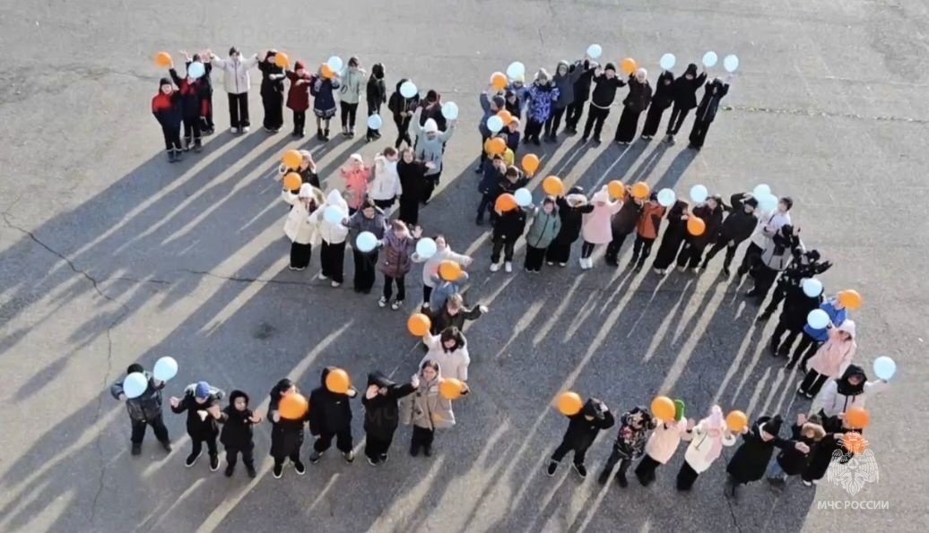 Оригинальное поздравление с 35-летием МЧС России подготовили учащиеся школы №18 города Апшеронска совместно с активистами «Движения Первых» и учениками начальных классов.