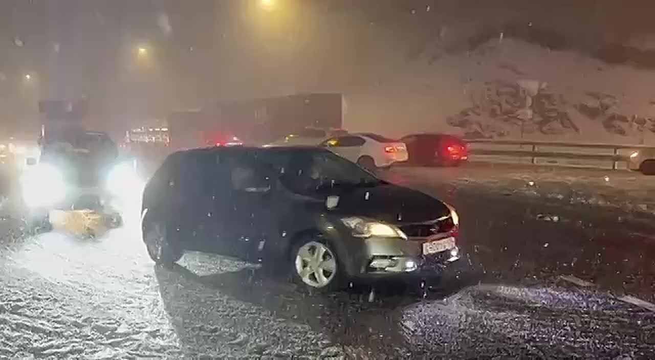 В связи с выпадение мокрого снега и понижением температуры до минусовой , на дороге образовалась наледь, налипание мокрого снега на дорожное полотно.