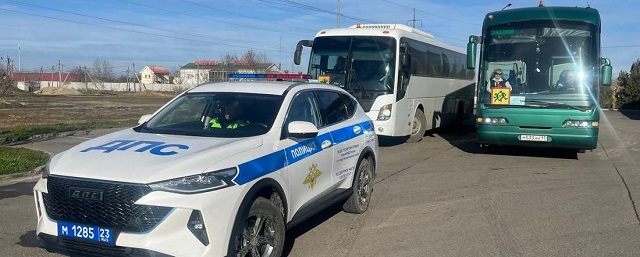 Госавтоинспекторы Белореченска проводят инструктажи с водителями и сопровождают автобусы, которые перевозят детей на новогодние мероприятия.
