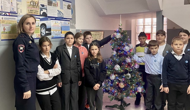 Кульминацией визита стало совместное украшение «Ёлки безопасности». Вместо обычных игрушек зеленая красавица была украшена творческими работами юных инспекторов с тематикой Правил дорожного движения.