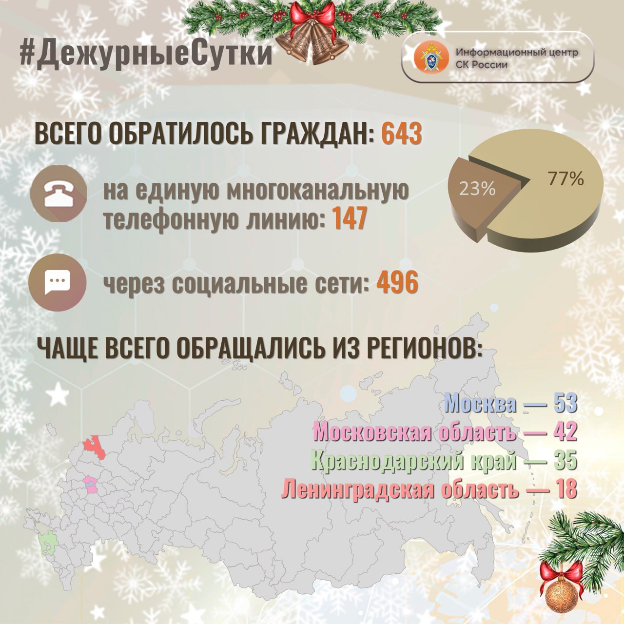 В Информационный центр СК России за прошедшие сутки всего обратилось граждан: 6 4 3