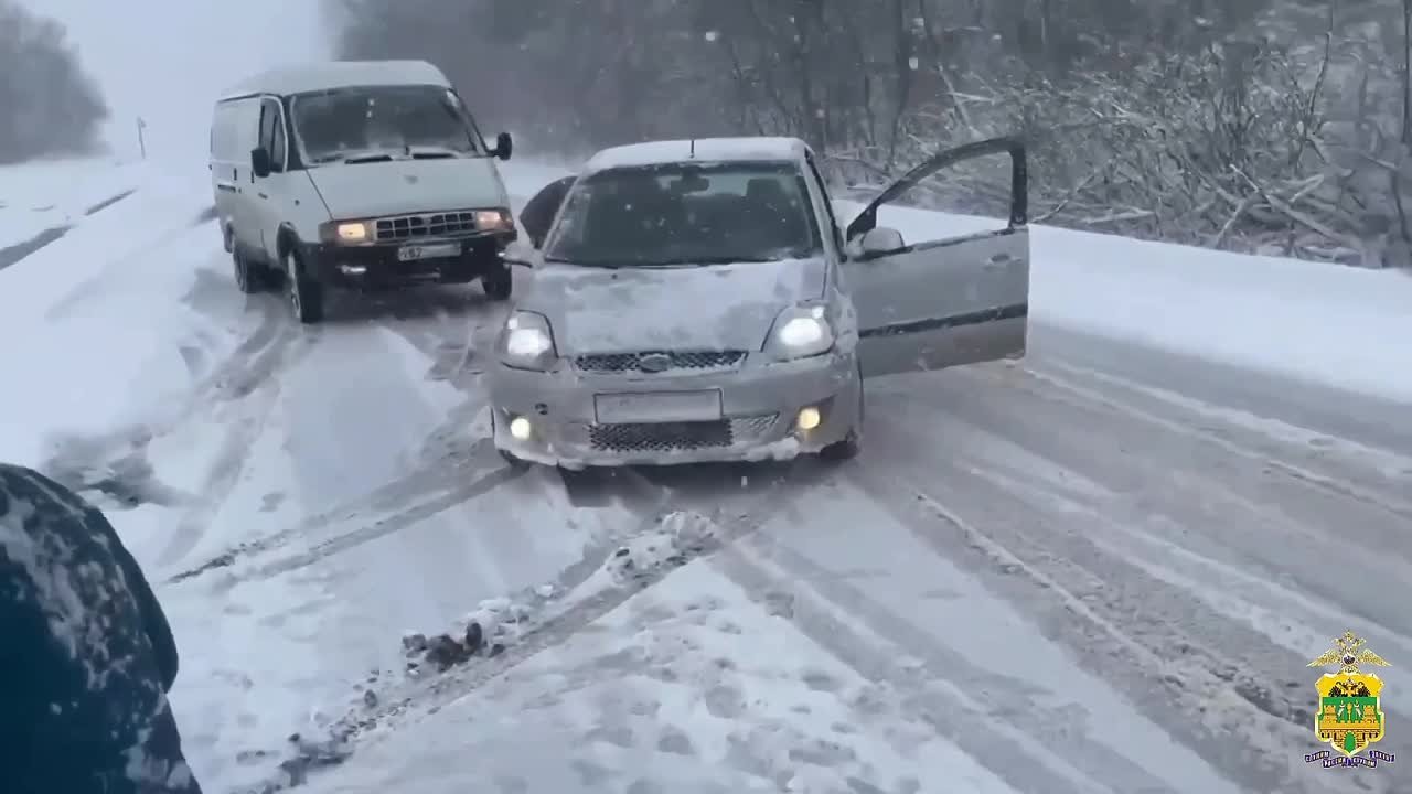 На видео автоинспекторы помогли жителям из соседней Республики Адыгея, автомобиль которых оказался в кювете.
