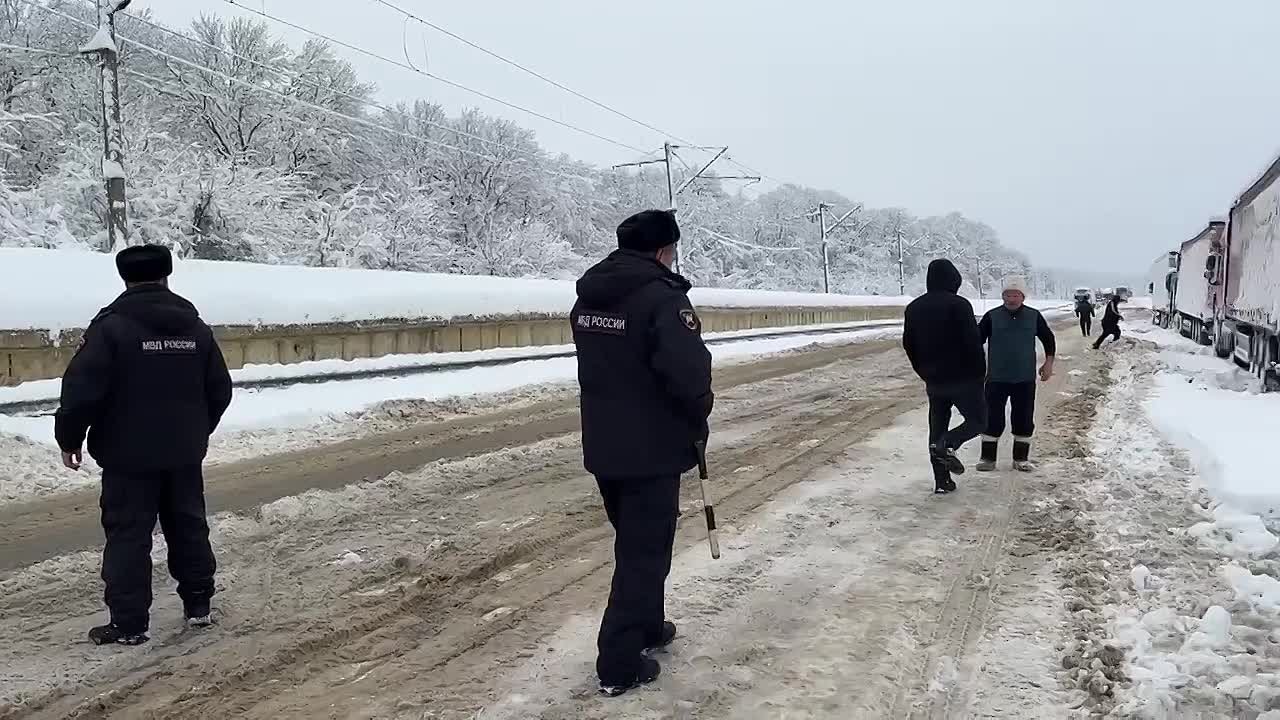Обстановка на участке автодороги А146 "Краснодар - Верхнебаканский". В связи с работой снегоуборочной техники затруднено движение транспортных средств. Комментарий старшего государственного инспектора БДД ОТН Госавтоинспекции Крымского района капитана полиции Александра Максакова.