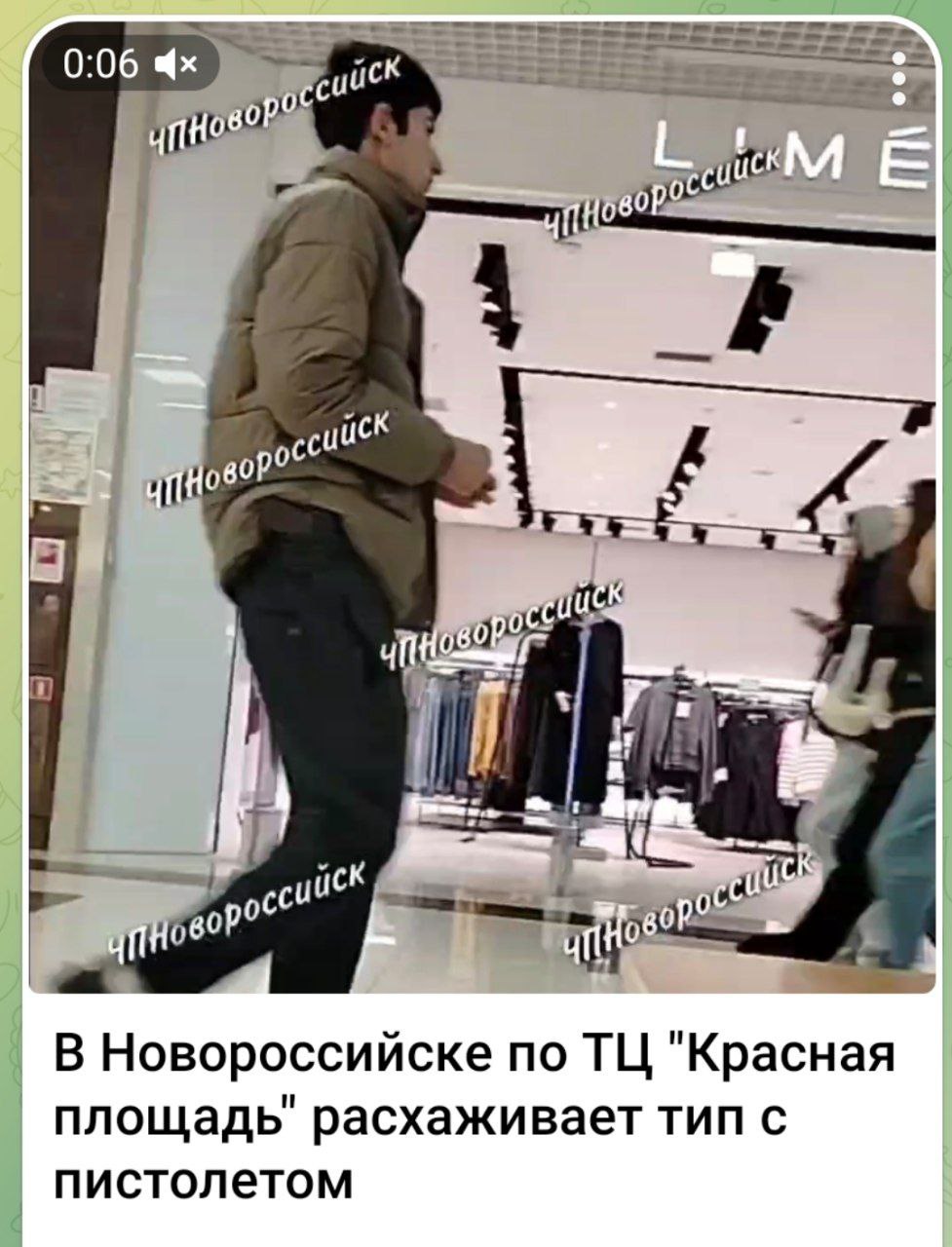 В ходе мониторинга сети Интернет сотрудниками полиции выявлена видеозапись, на которой запечатлено, как мужчина находится в одном из торговых центров Новороссийска с предметом, конструктивно схожим с пистолетом.