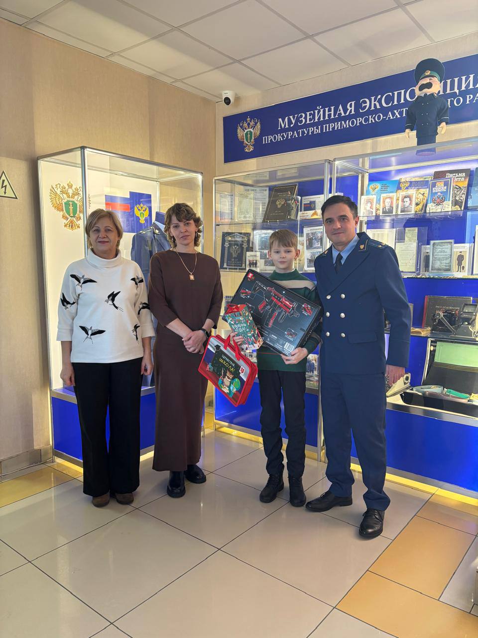 Прокурор Приморско-Ахтарского района Вадим Хижний совместно с социальным координатором филиала Государственного фонда поддержки участников СВО «Защитники Отечества» по Краснодарскому краю в Приморско-Ахтарском районе поздравили с днем рождения Семена, сына погибшего в зоне СВО военнослужащего, которому исполнилось 12 лет.