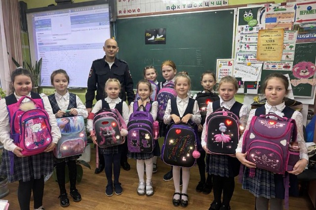 Автоинспектор разъяснил ребятам, из чего складывается тормозной путь автомобиля и объяснили, что световозвращающие элементы позволяют водителю раньше заметить пешехода на проезжей части. Автоинспектор напомнил школьникам о необходимости размещать световозвращатели на одежде и рюкзаках.