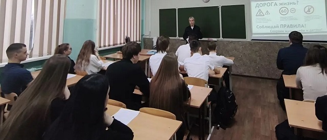 Страж дорожного порядка ознакомила школьников со статистикой ДТП с участием детей и рассказала об основных причинах дорожно-транспортных происшествий. Многие дети, являясь пешеходами, сокращают свой путь и не пользуются специальными местами для перехода проезжей части, двигаются по дороге при наличии тротуара, или переходят дорогу на запрещающий сигнал светофора, не имея водительских прав управляют транспортными средствами.