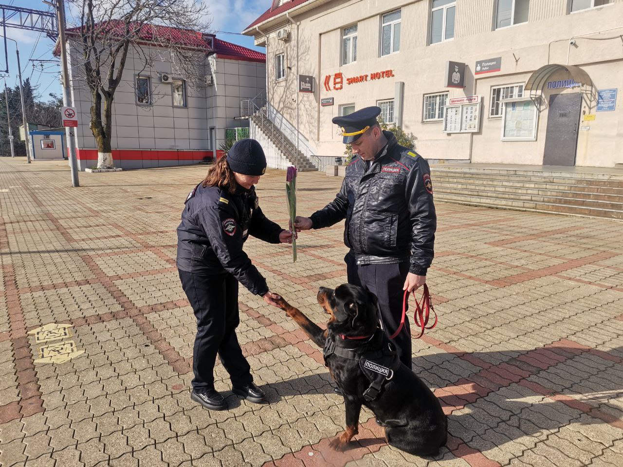 В этот праздничный весенний день, 8 марта, транспортные полицейские на железнодорожном вокзале станции Туапсе решили сделать утро представительниц прекрасного пола по-настоящему особенным. В рамках акции «8 марта – в каждый дом» стражи порядка вышли на перрон, чтобы подарить женщинам не только цветы, но и искренние улыбки, а также теплые поздравления.