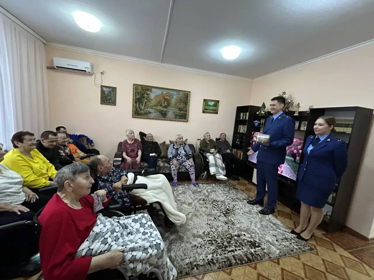 Визит носил не только праздничный, но и социально значимый характер. В ходе посещения представители надзорного ведомства уделили приоритетное внимание вопросам законности и качества предоставления социальных услуг, а также условиям проживания пожилых людей и инвалидов. Был проведен личный прием граждан, в ходе которого каждый желающий смог задать интересующие вопросы.
