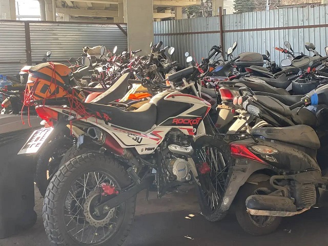 На фото вы можете увидеть, как выглядит стоянка, на которой находится изъятая мототехника, которой управляли подростки.