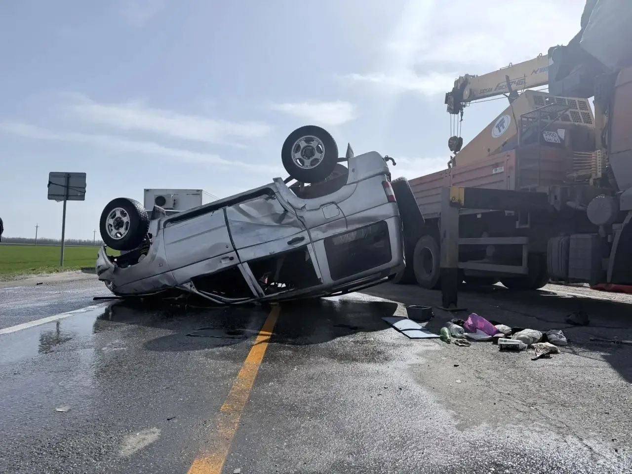Сегодня, 19 марта 2026 года, в 10 час 20 минут, на автодороге ФАД Кавказ водитель УАЗ "Патриот" не выбрал безопасную скорость движения и не справился с управлением, допустил наезд на препятствие с последующим опрокидыванием.