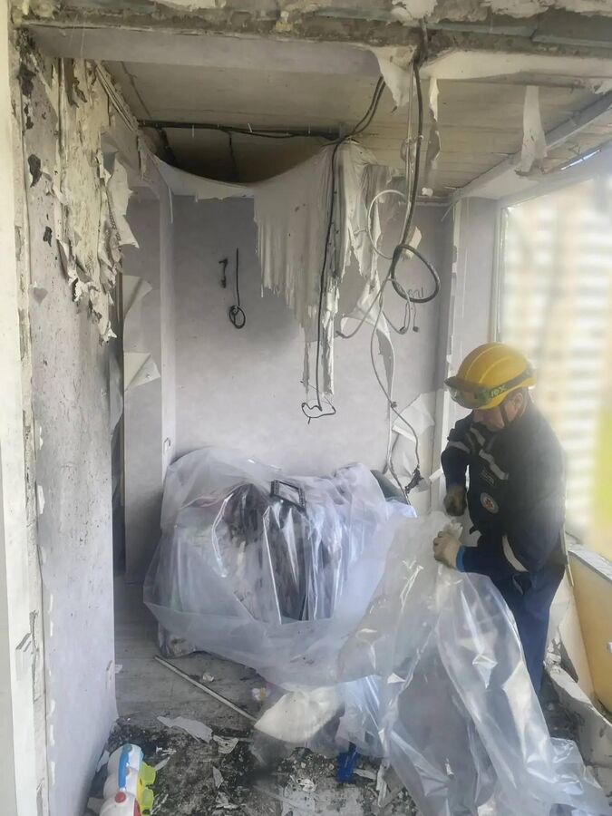 Он добавил, что сотрудники Службы спасения выполнили демонтаж опасных конструкций и убрали осколки стёкол. Где было необходимо, затянули выбитые окна плёнкой. В квартире, которая пострадала больше всего, затянули весь балкон.
