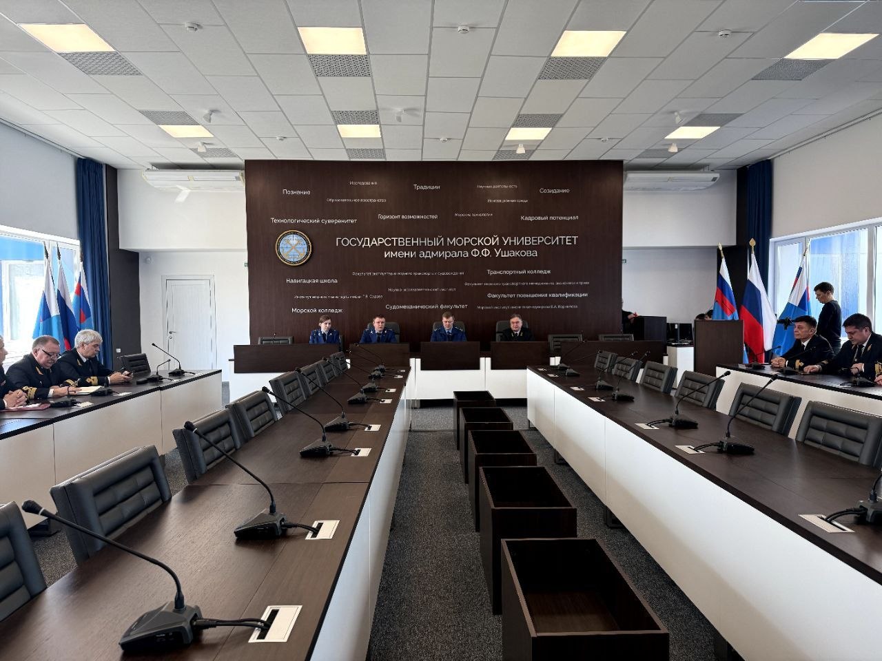 В рамках визита заместитель Южного транспортного прокурора Валерий Козлов посетил ФГБОУ ВО «Государственный морской университет имени адмирала Ф.Ф. Ушакова», встретился с руководством и коллективом учреждения. Обсуждены гарантии трудовых прав, безопасность университета и эффективность реализации программ формирования законопослушного поведения обучающихся.