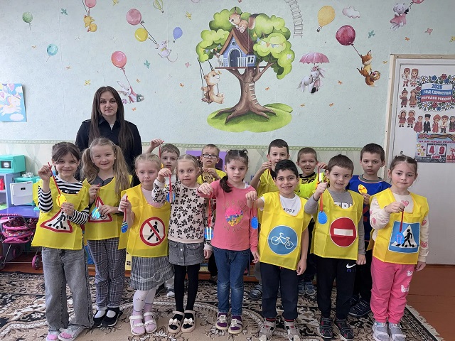 Занятие началось с небольшой познавательной беседы. Госавтоинспектор в доступной для малышей форме объяснила, зачем нужны световозвращающие элементы, как они работают и почему так важны для пешеходов. Дети с живым интересом слушали рассказ, задавали вопросы и делились своими наблюдениями о том, как выглядят такие элементы на одежде прохожих или на рюкзаках старших ребят.