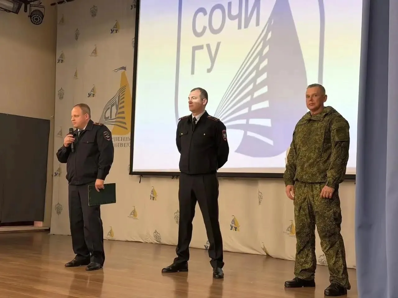 Транспортная полиция Сочи провела антинаркотические лекции для студентов в рамках операции «Защитники Отечества». Сотрудники линейного управления совместно с военным комендантом провели профилактические занятия для студентов первых курсов Университетского экономико-технологического колледжа при Сочинском государственном университете.