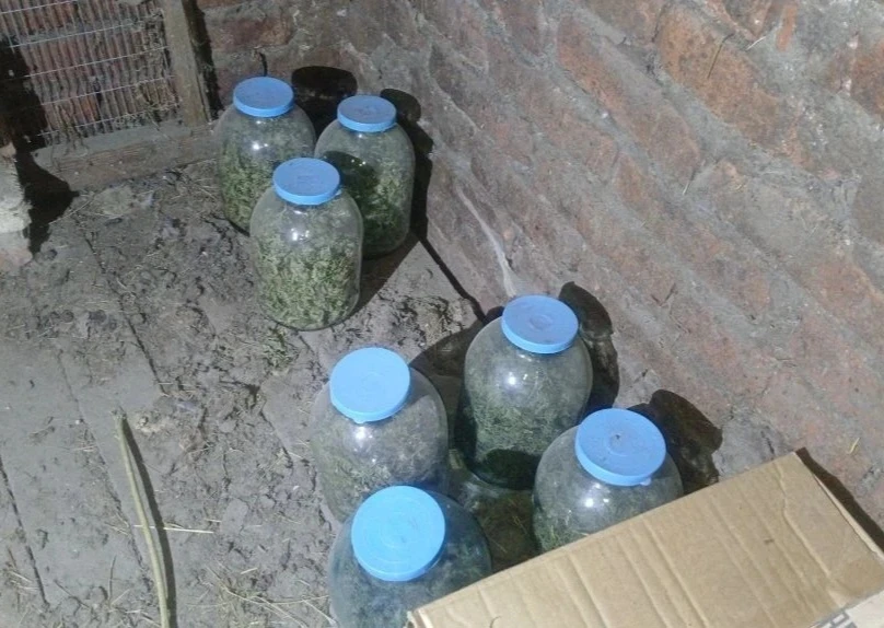 В сарае наркофермера оперативники обнаружили и изъяли 10 банок с частями наркосодержащих растений. Еще одну ёмкость с марихуаной мужчина хранил в доме.