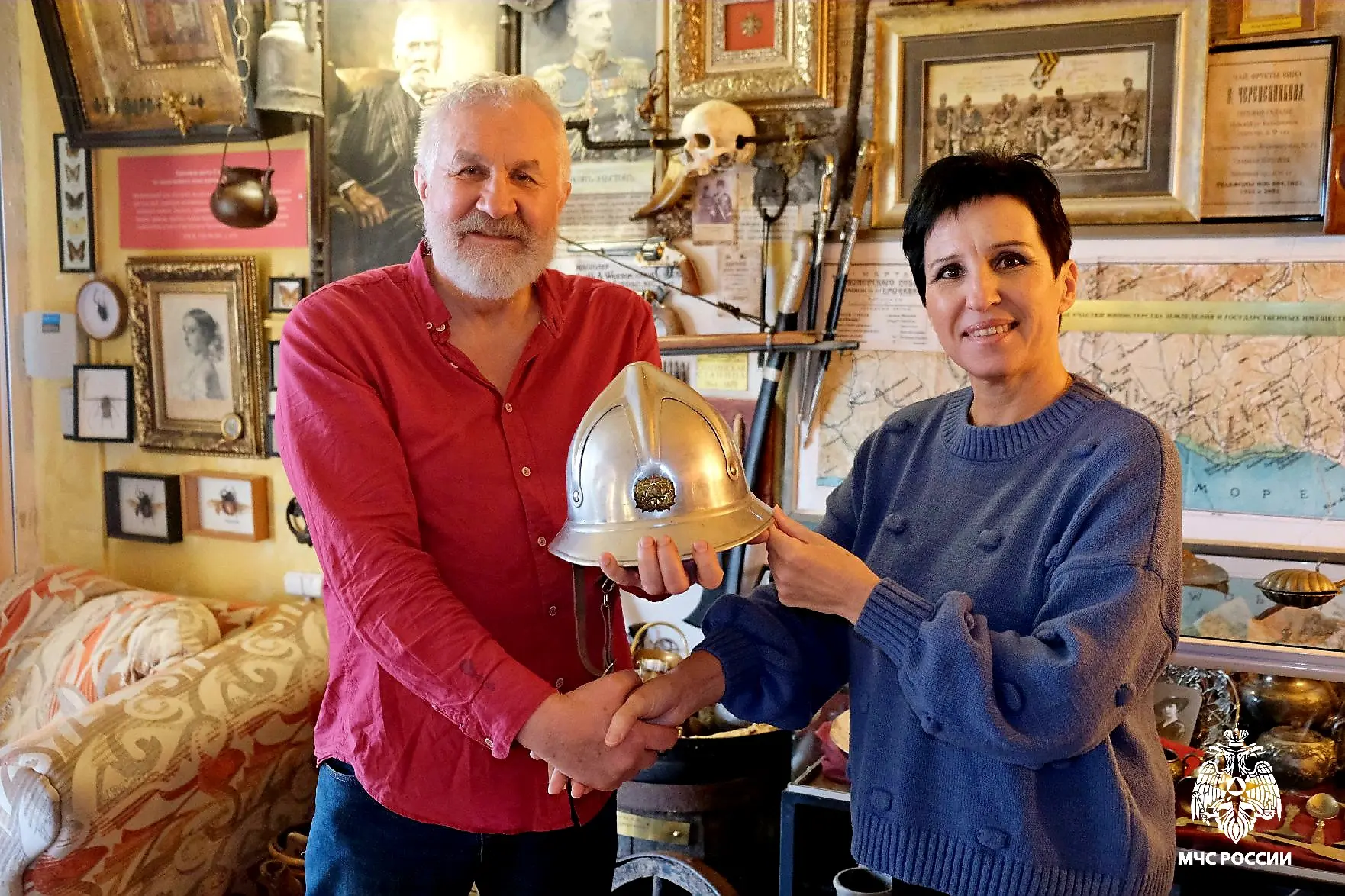 •юные журналисты получили в подарок раритетную югославскую пожарную каску 1950–60 х годов — она пополнит коллекцию пожарно технической выставки «Орлёнка».