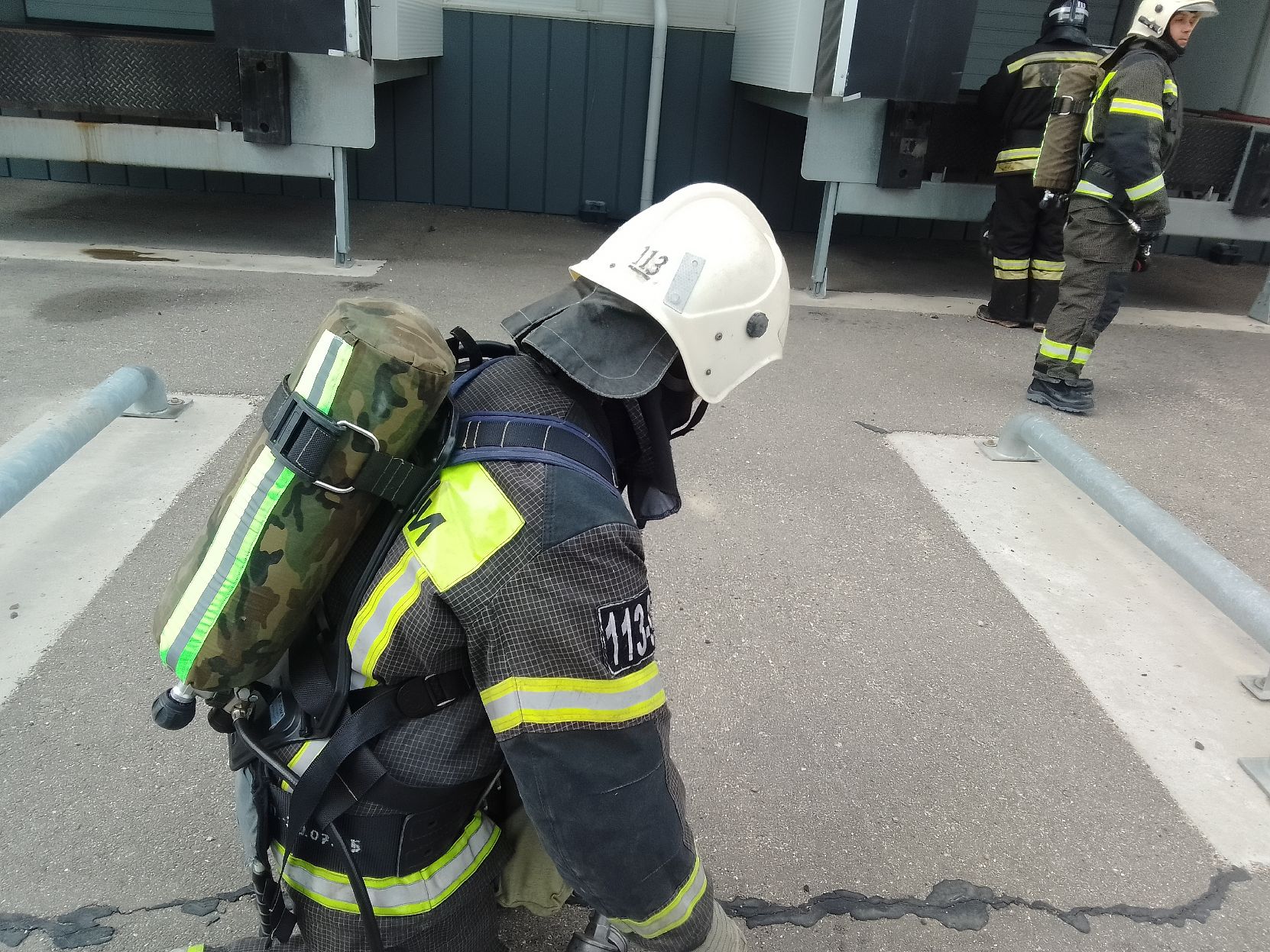 - эвакуация трёх условных пострадавших, которые не могли самостоятельно покинуть опасную зону. Эту задачу выполняли газодымозащитники, используя средства индивидуальной защиты органов дыхания;