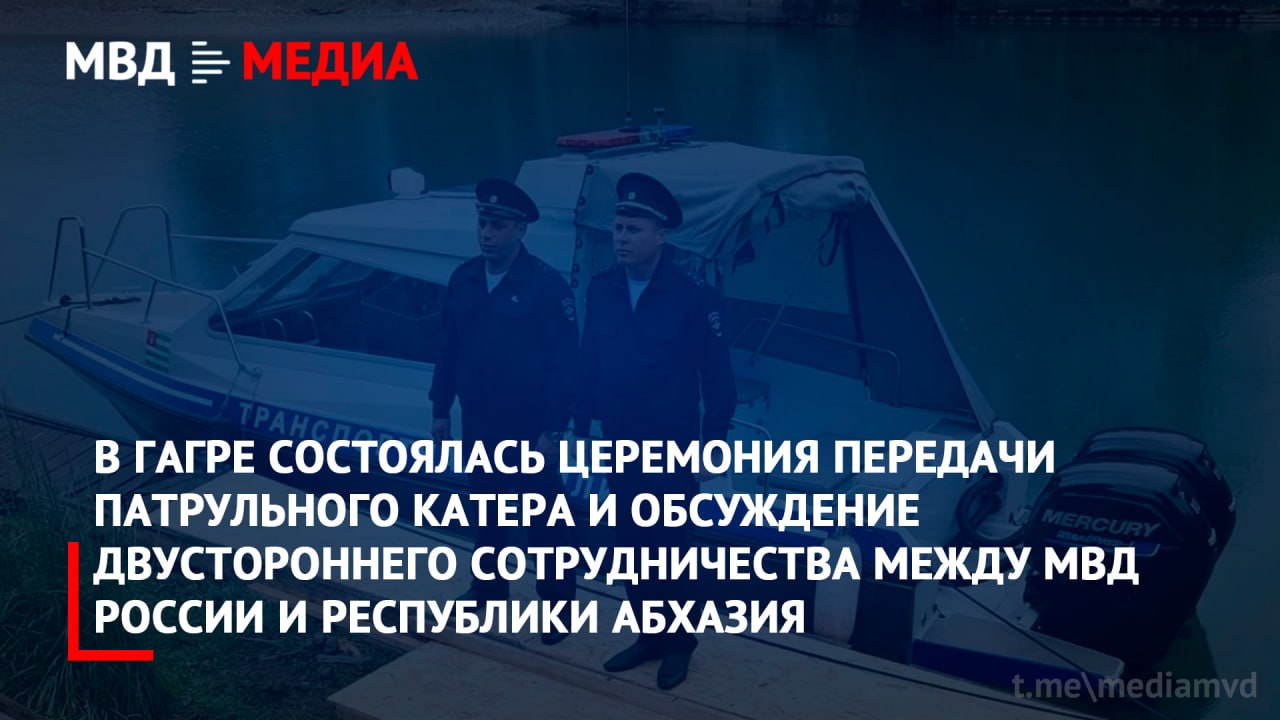В акватории Старой Гагры Республики Абхазия состоялась торжественная церемония спуска на воду и передачи патрульного катера, предназначенного для охраны местной акватории. Новое судно предназначено для формируемого отделения милиции на водном транспорте в Гагрском районе, которое в скором времени начнет полноценную работу по пресечению правонарушений на воде.