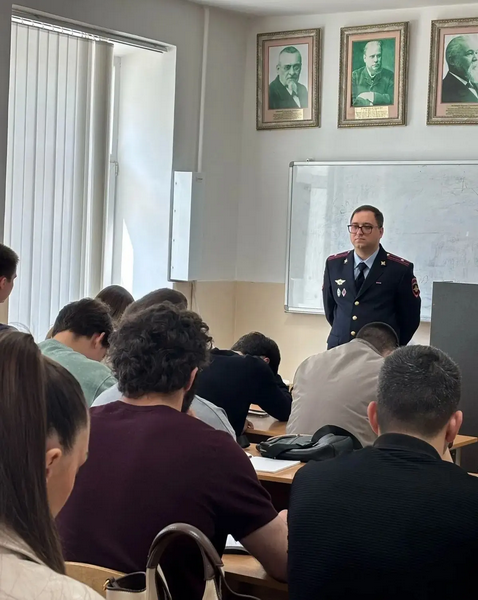 Заместитель начальника 1 Отдела УБК ГУ МВД России по Краснодарскому краю майор полиции Иван Смирнов рассказал слушателям о распространённых схемах IT- мошенничества, в том числе, в отношении молодых людей. Полицейский осветил вопросы противодействия киберпреступности, соблюдения цифровой гигиены и предотвращения буллинга в сети Интернет. Будущие юристы узнали о тенденциях социальной инженерии и уголовной ответственности за дропперство.