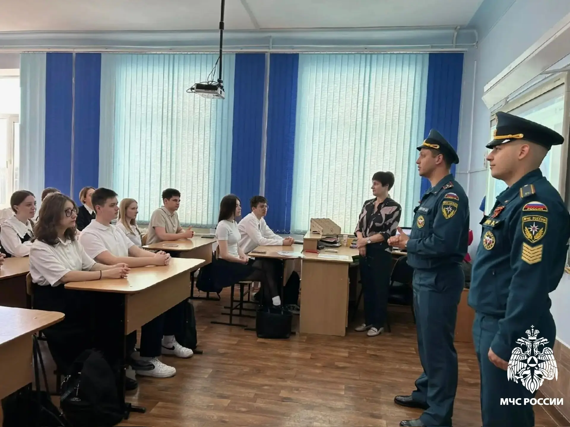 В одной из школ встретились с начальником Крымского пожарноспасательного гарнизона Кириллом Эдуардовичем Никитиным и курсантом Московской академии Артёмом Андреевичем Кочу. Гости поделились опытом, рассказали о своём обучении и важности командной работы.