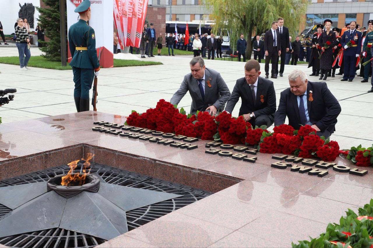 Вениамин Кондратьев и Евгений Наумов возложили цветы к Вечному огню в Краснодаре