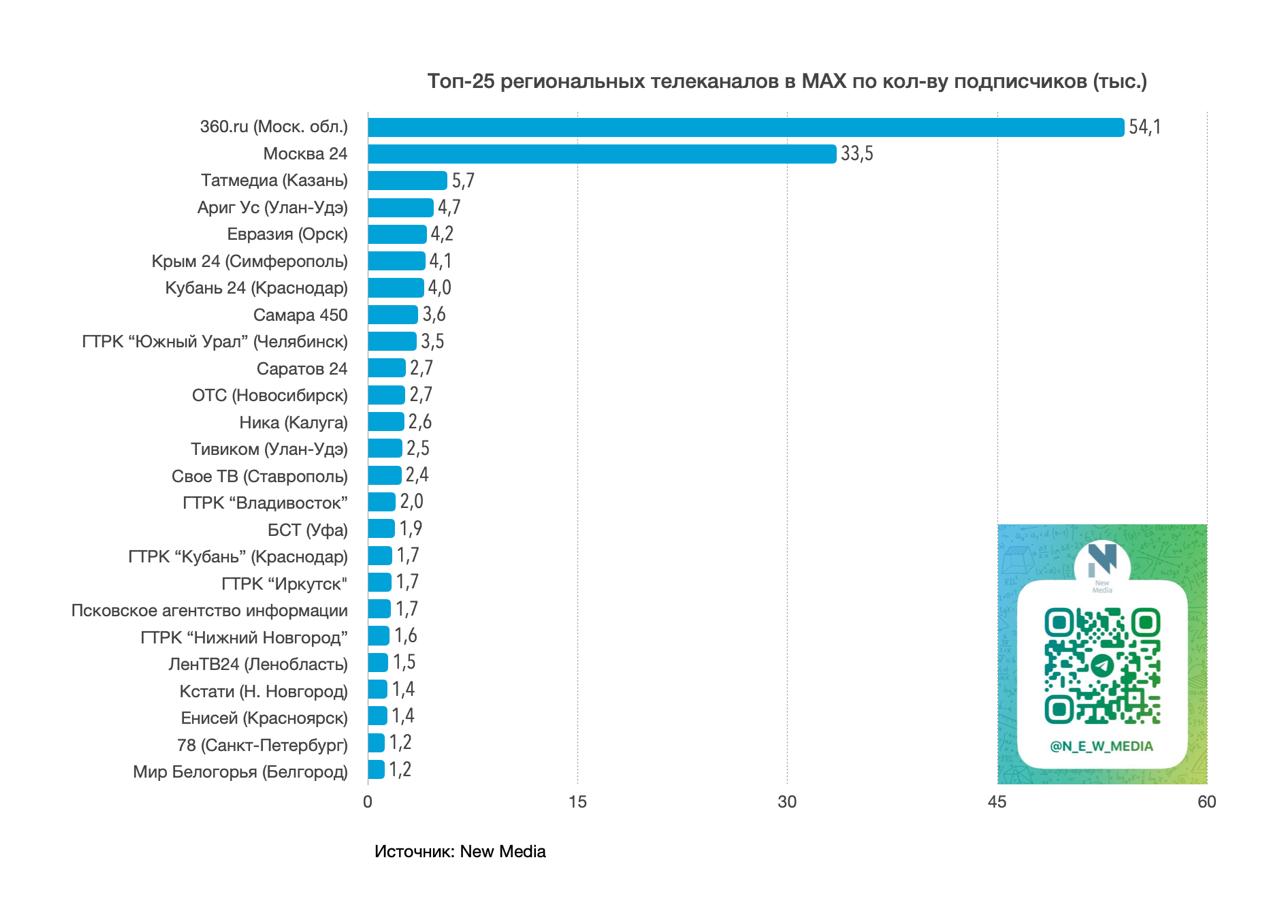 «Кубань 24» вошел в топ-10 региональных каналов в Max.