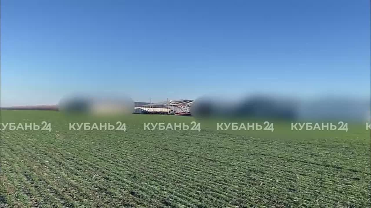 На месте падения обломков БПЛА в Щербиновском районе работает съемочная группа «Кубань 24».