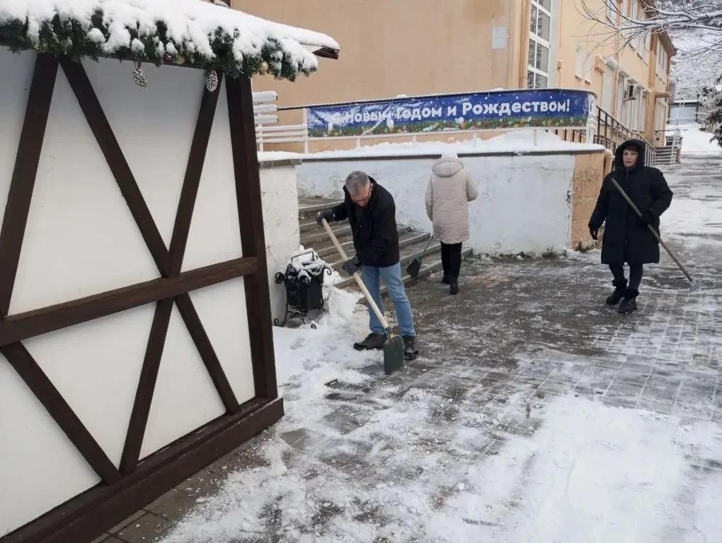 Город и пригороды в едином порыве избавляются от большой напасти, которую принес снегопад. Глава города-героя Новороссийска Андрей Кравченко сообщил, что выпала месячная норма осадков. И этот объем особо ощутили на себе в сельских округах. Например, в Абрау-Дюрсо на борьбу со снегом на улицы вышли и жители, и сотрудники администрации, и работники тракторного парка.