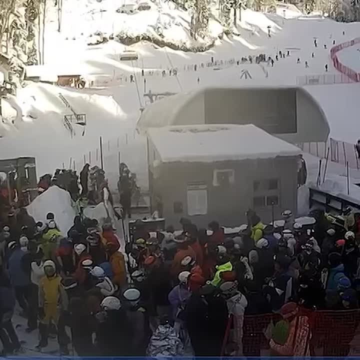 Люди столпились у подъёмников и стоят в очередях по полтора часа. Показываем кадры со станции "Вероника" на "Розе Хутор".