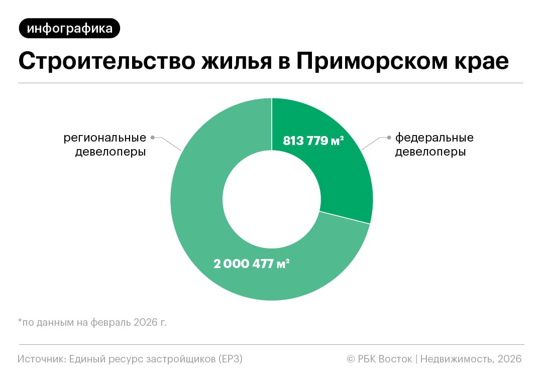 В списке девелоперов, в портфеле которых на сегодня есть активные кейсы по возведению жилья, 85 имеют приморскую «прописку». Оставшиеся компании пришли в регион из Москвы (5 девелоперов), Санкт-Петербурга (1), Удмуртии (1), Краснодара (1) и Хабаровска (1).