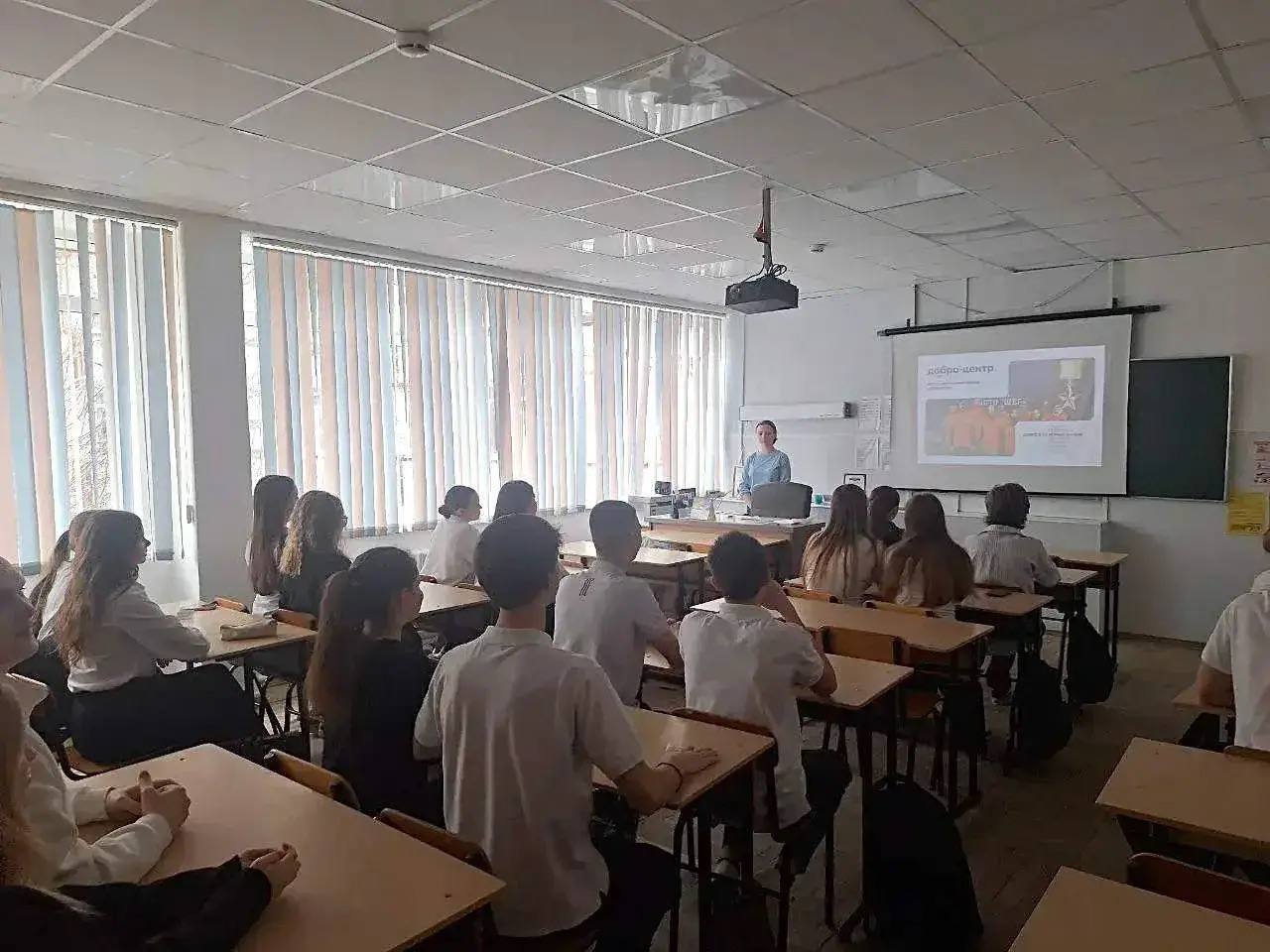 Школьникам презентуют актуальные направления волонтёрской деятельности, делятся примерами реализованных инициатив и рассказывают об участии в мероприятиях различного уровня в качестве добровольцев.