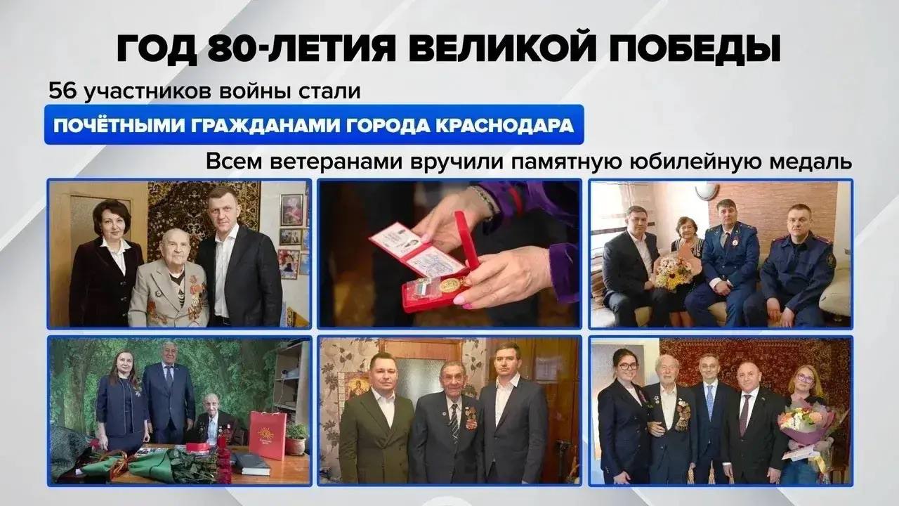 В Краснодаре в юбилейный год 56 ветеранов Великой Отечественной войны стали Почётными гражданами города.