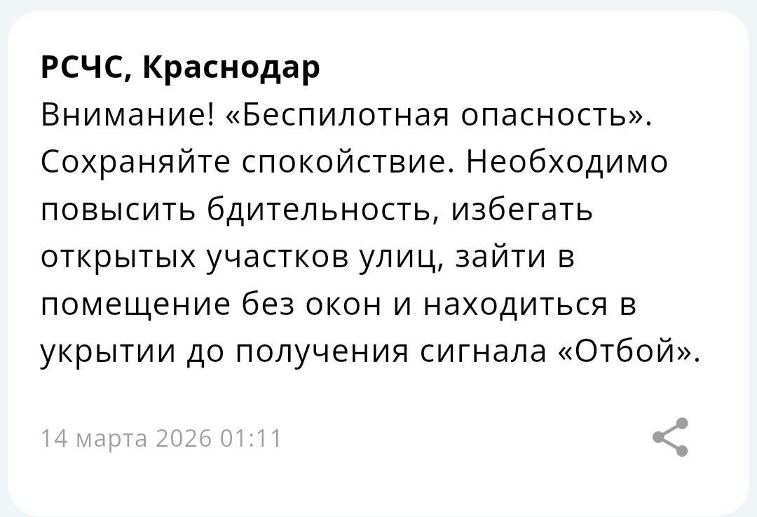 «Беспилотную опасность» объявили в Краснодаре — работает система ПВО.