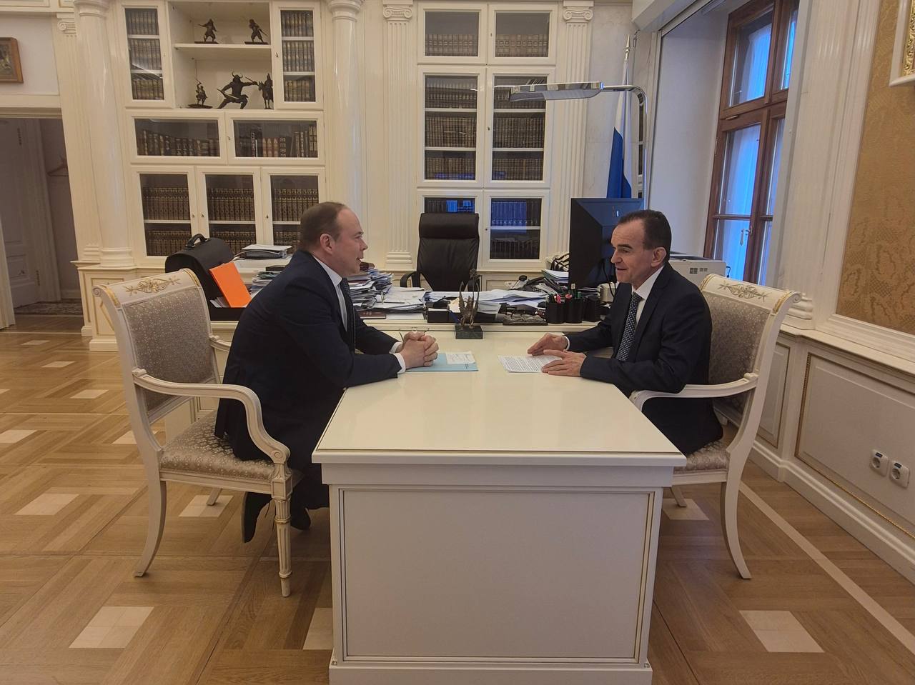 Нахожусь с рабочей поездкой в Москве. Сегодня встретился с руководителем Администрации Президента России. Рассказал Антону Эдуардовичу Вайно о социально-экономическом развитии края и реализации в регионе национальных проектов.