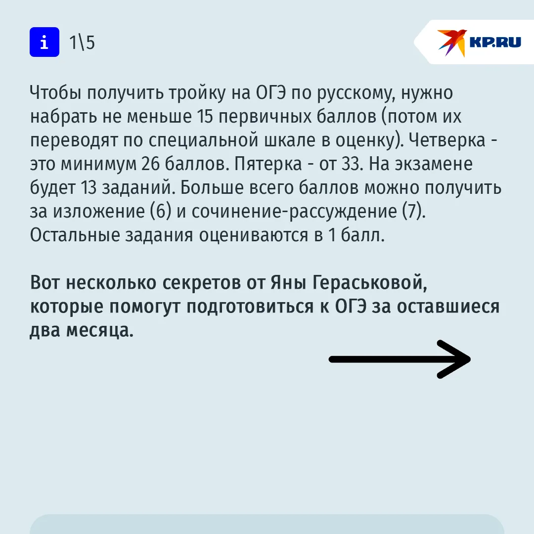 В этом году ОГЭ по русскому языку выпускники напишут 9 июня. Русский - один из двух обязательных выпускных экзаменов, и если не сдать хотя бы на тройку, не выдадут аттестат об основном общем образовании. А значит, ребенок не сможет поступить в колледж или продолжить учебу в школе в старших классах. В прошлом году двойки на обязательных ОГЭ получили аж 122 тыс. выпускников - почти каждый десятый.