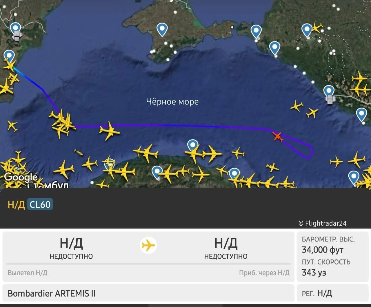 Самолёт-разведчик НАТО Bombardier ARTEMIS II замечен над акваторией Чёрного моря