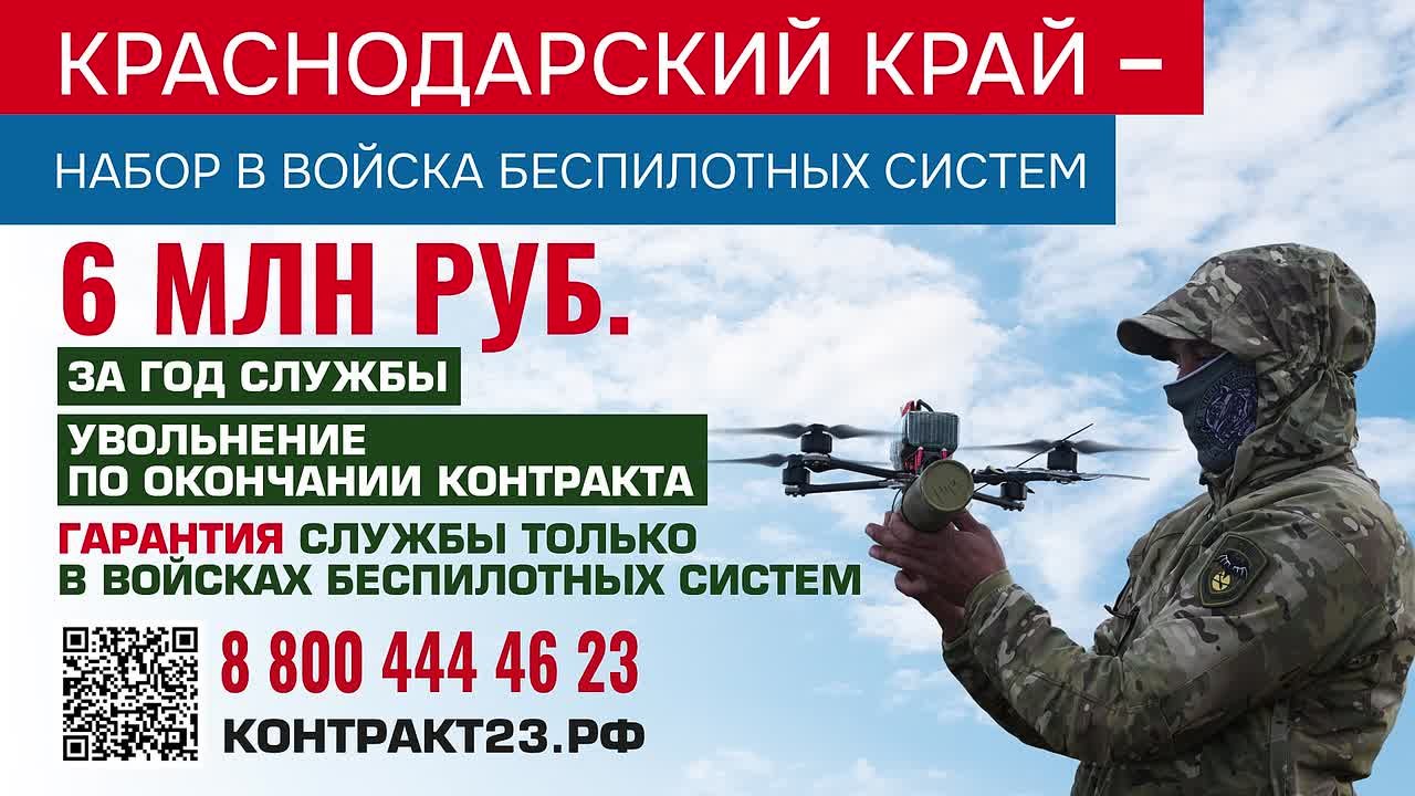Встать плечом к плечу с нашими защитниками можно, записавшись на службу по контракту. Электронные заявки отправляйте на официальный региональный портал контракт23.рф Общая единовременная сумма выплат при заключении контракта в Краснодарском крае — до 3 400 000 рублей. Подробности можно узнать по телефону 8 800 444 46 23.