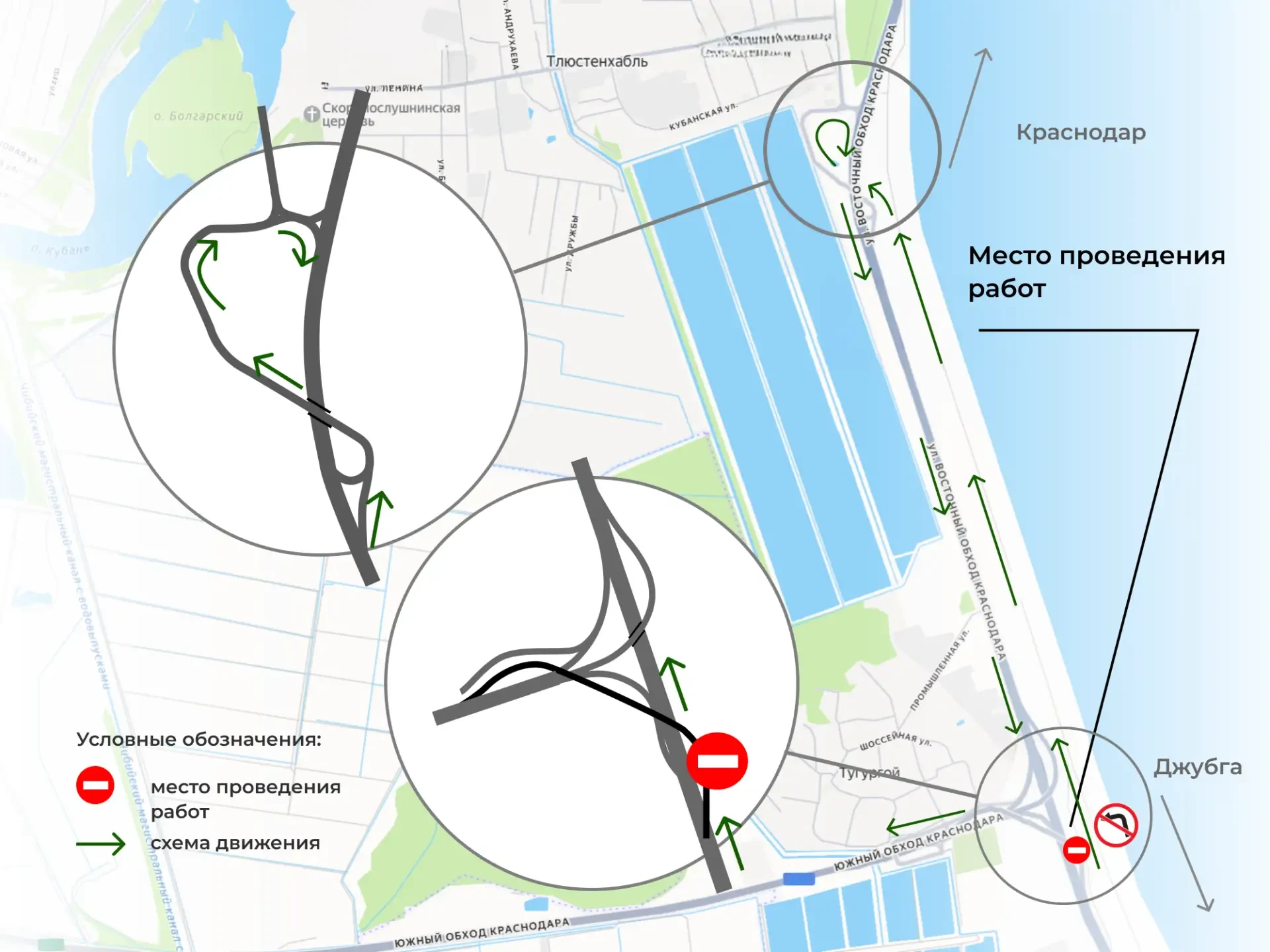 "С 24 по 30 апреля 2026 года у аула Тугургой будет закрыт съезд с трассы М-4 "Дон" на Южный обход Краснодара по направлению из Джубги", - говорится в сообщении.