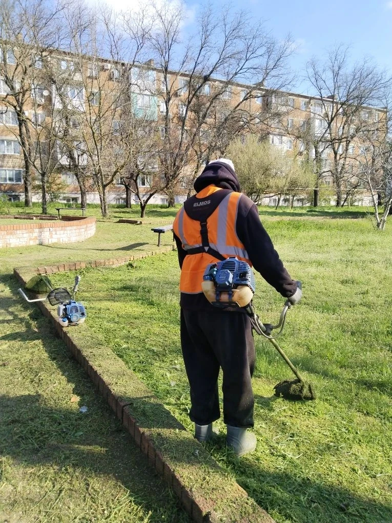 Работы по покосу травы и наведению санитарного порядка на Приморской набережной, ул. Нижнесадовой, ул. Коммунистической, 49/6, в сквере у ж/д вокзала и по ул. Коммунистической, 49/2