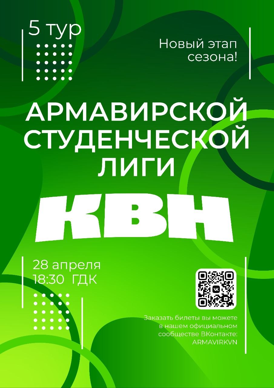 28 апреля в 18:30 в концертном зале городского дворца культуры состоится игра пятого тура Армавирской студенческой лиги!